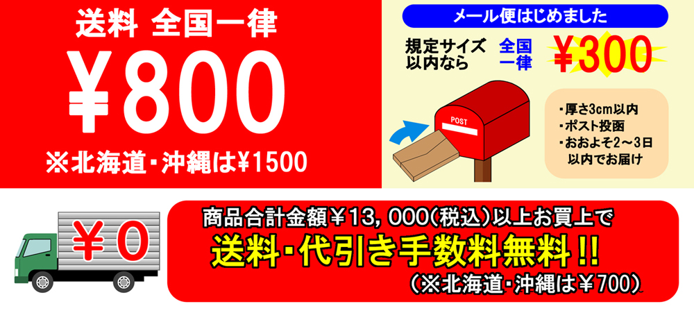13,000円以上お買い上げで送料・代引き手数料無料!!※北海道・沖縄は除く(別途\700のみかかります。)